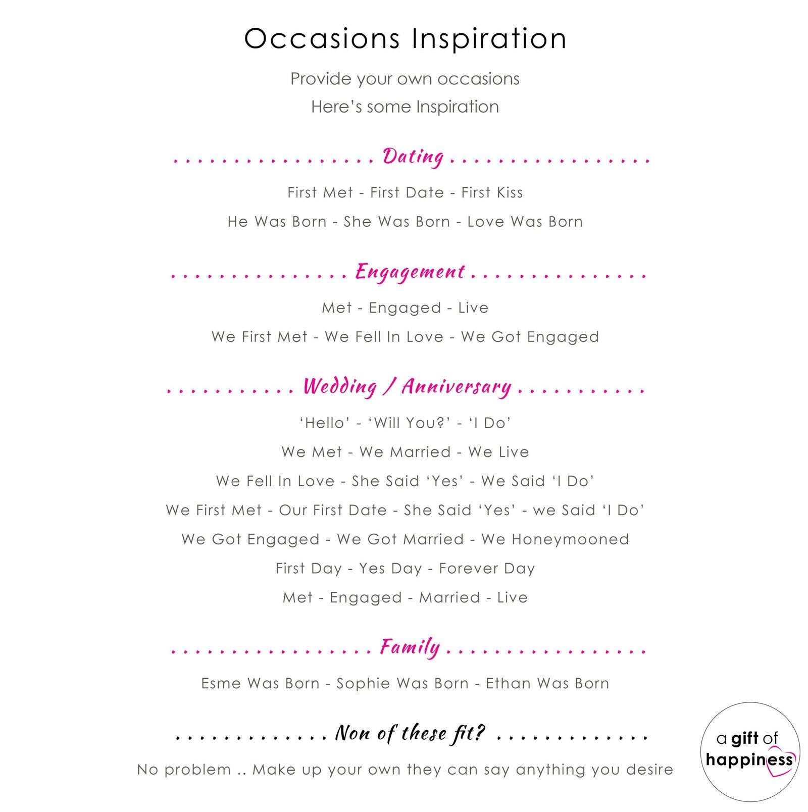 • Option to add personalized text or dates